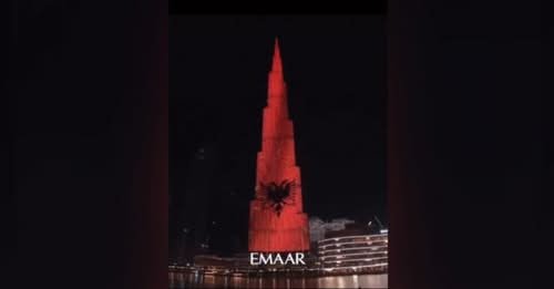 Një urim i veçantë ka ardhur për Shqipërinë me rastin e 113 vjetorit të shpalljes së Pavarësisë, ku kulla “Burj Khalifa” në Dubai është ‘veshur’ kuq e zi.