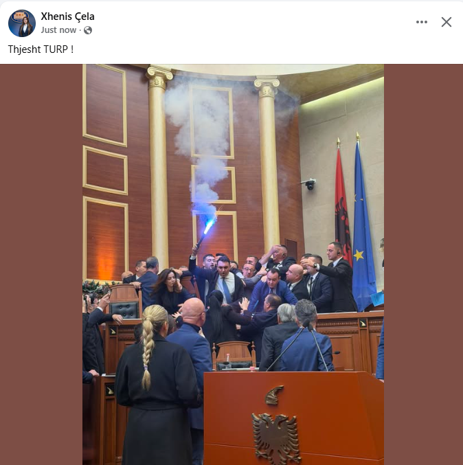 Reagime pati edhe nga deputetja Xhenis Çela, e cila publikoi fotografi nga seanca plenare, duke shkruar shkurt: “Thjesht TURP!”