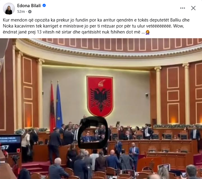 “Kur mendon që opozita ka prekur jo fundin, por ka arritur qendrën e tokës, deputetët Balliu dhe Noka kacavirren tek karriget e ministrave jo për t’i rrëzuar, por për t’u ulur vetë. Wow… ëndrrat janë prej 13 vitesh në sirtar dhe qartësisht nuk fshihen dot më.”