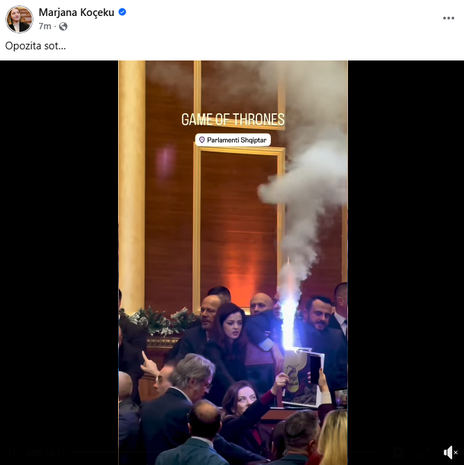 Ndërkohë, deputetja Marjana Koceku publikoi pamje video nga përplasjet në Kuvend, duke i shoqëruar ato vetëm me mbishkrimin “Game of Thrones”, në referencë ndaj serialit të njohur që trajton luftën për pushtet, intrigat politike dhe kaosin institucional.