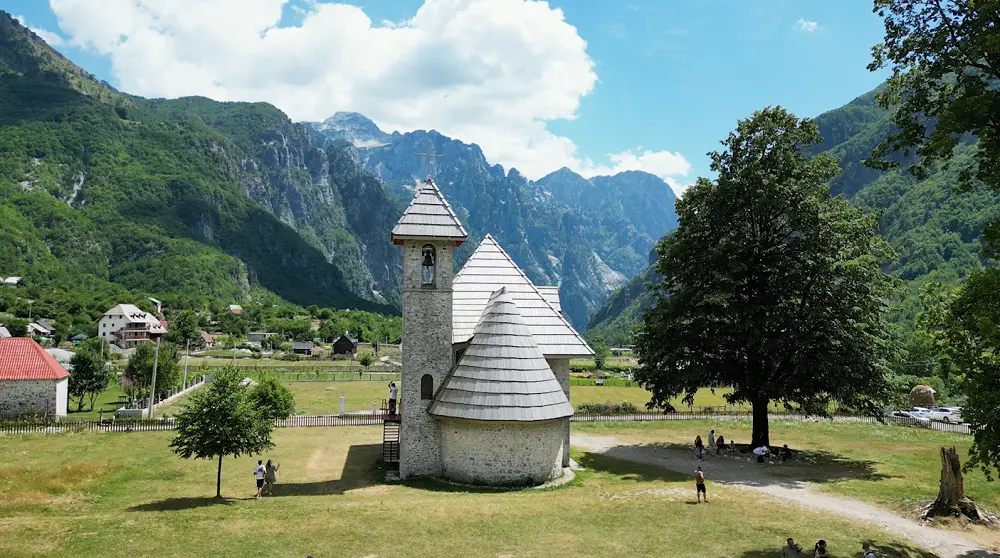 “Pasi keni qenë në kalanë e Shkodrës, nuk mund të mungojë si destinacion Parku Kombëtari i Thethit, një park i fshehur mes malesh të lartë të cilat krijojnë një ambient unik. Në qendër të luginës ndodhet kjo kishë, shumë e rëndësishme për kulturën shqiptare jo vetëm në aspektin religjioz por sepse një shkollë e hapur e publike, duke filluar prej vitit 1917 kur ajo ka hapur dyert për të gjithë fëmijët e zonës. Këtu ndodhet edhe varri i një albanologu mjaft të rëndësishëm (Robert Elsie) dhe ky është rasti për të sjelle një lule në vendin e tij të prehjes. Pak më tej gjeni edhe kaskata të mrekullueshme dhe akoma më tej mund të vizitoni Syrin e Kaltër të Thethit, një liqen me ngjyrë rubini, një vend i jashtëzakonshëm”, përfundon ajo.